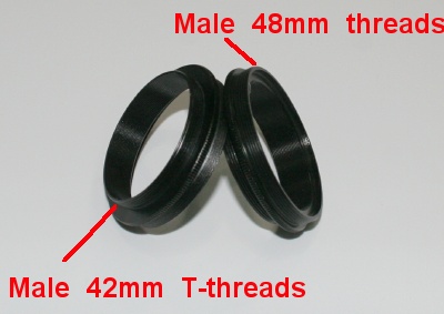 and M48 (2" filter) male threads on the other side. The M42 threads