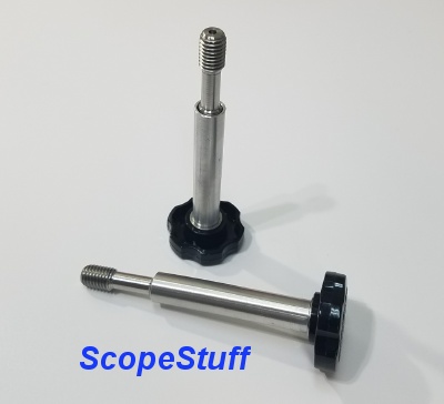 Stainless steel machined bolt, aluminum spacer and black delrin knob.